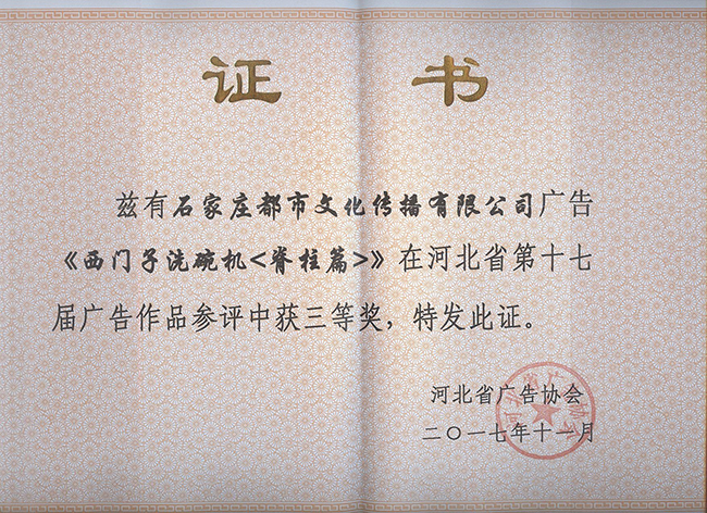 河北省第十七屆廣告作品參評榮獲三等獎